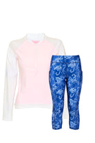 Bundle & Save - Ladysmith Long Sleeve Slim Fit Rash Guard + Pre Order Nellie Swim Capri Legging in Bluehaven