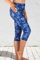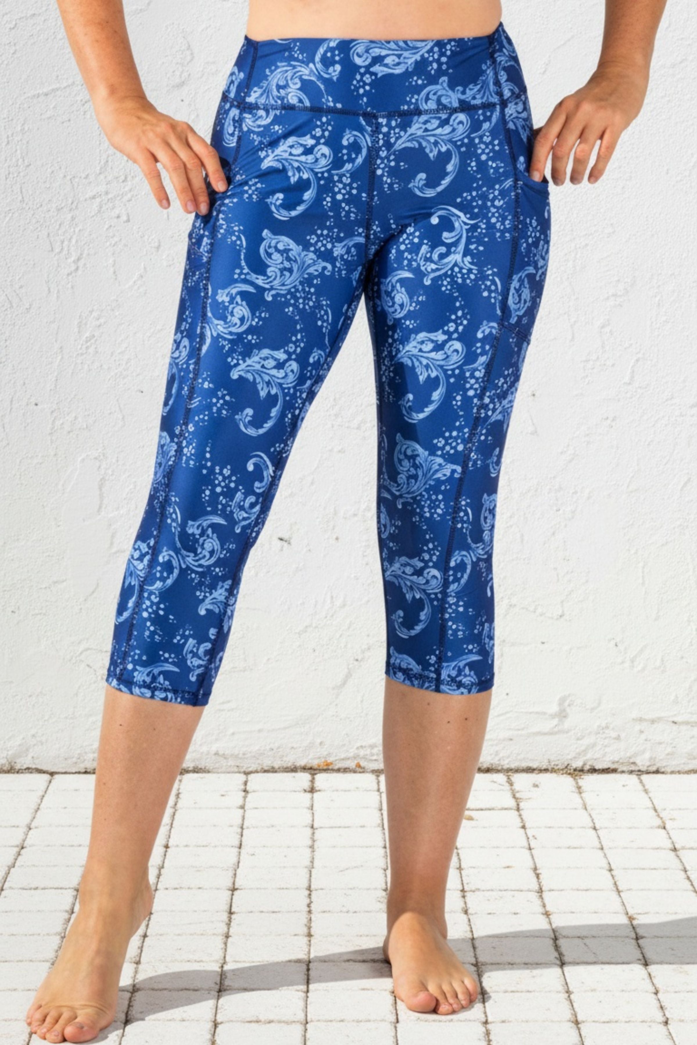 - Nellie Dual Pocket Swim Active Legging Capri Length in Bluehaven