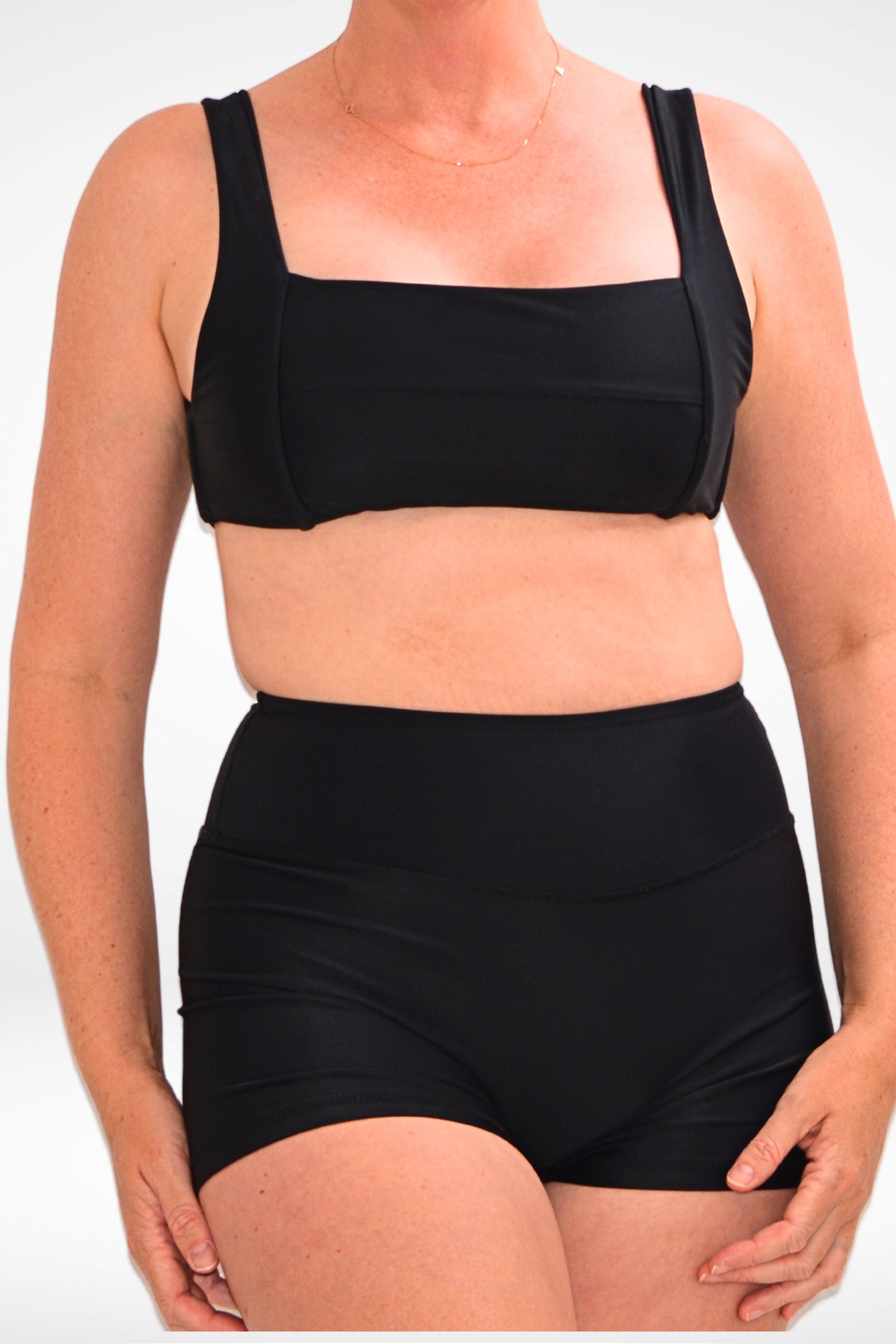 Experience ultimate comfort and support with the Deloraine bikini top! Featuring a stunning square front paneling and back tie, this top is perfect for achieving your desired fit. With its seamless double-lined fabric and square front panel, this swimwear offers a super smooth and comfortable fit that perfectly hugs your curves. And no more worrying about those pesky swimsuit marks - our back tie design ensures a perfect, dig-free fit.