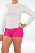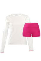 Black Friday Matching Set - Andi Long Sleeve Active Swim T-Shirt in White + Linne 3" Swim Shorties in Pink