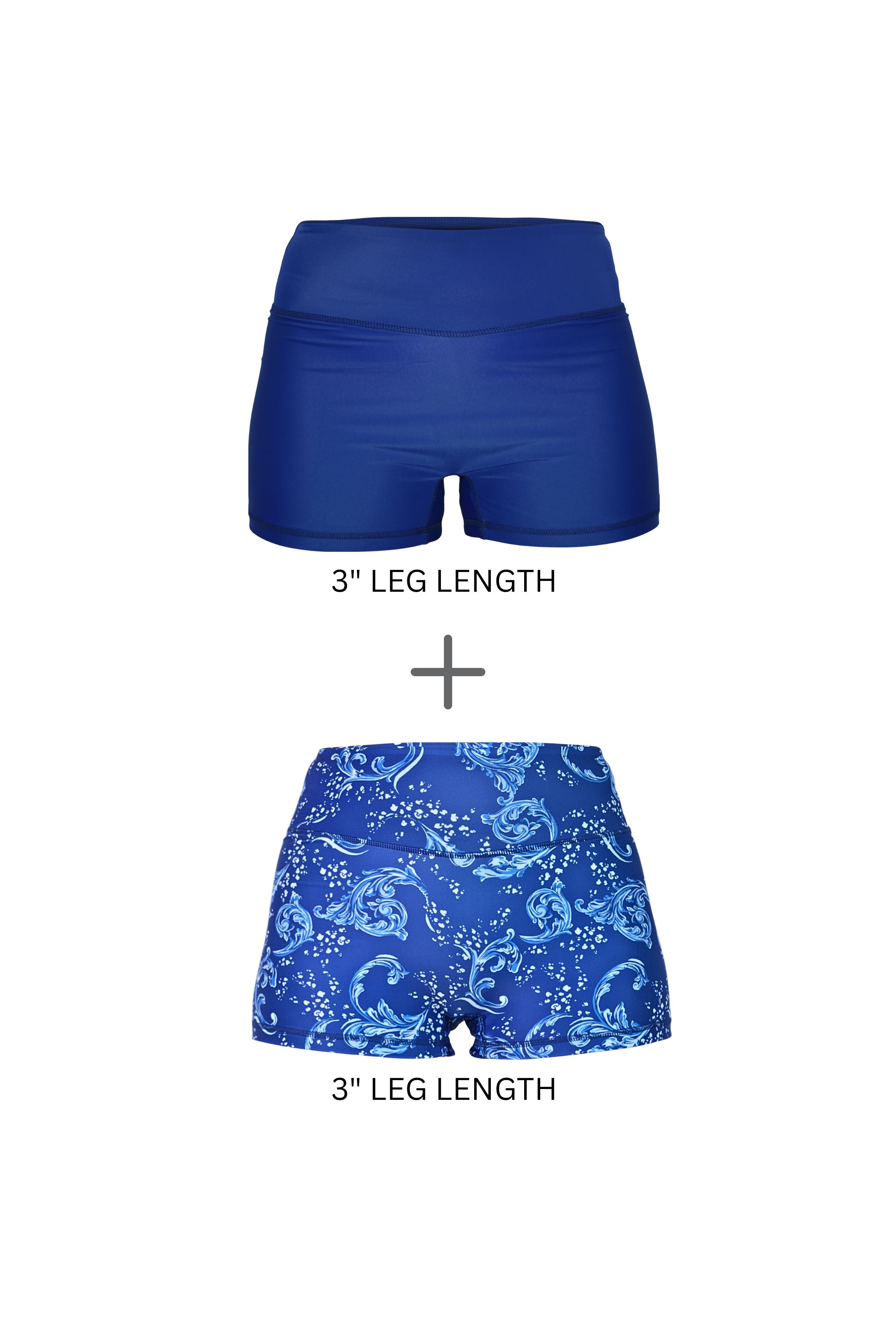 Black Friday Set - Linne 3" Swim Active Shorties in Deep Blue + Bluehaven Print