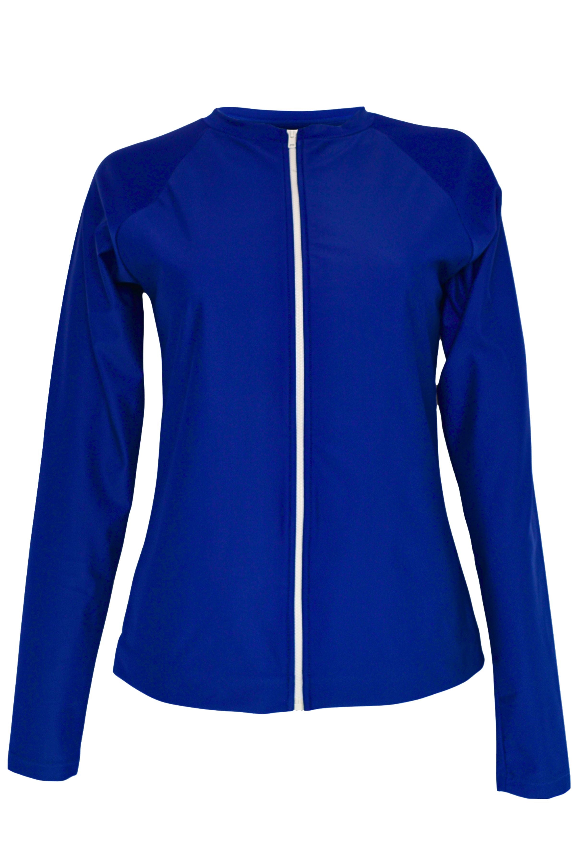 The Hannah long sleeve rash guard is a versatile long sleeve swim or active top with full front zip. Featuring front and back double fabric lining for a luxurious fit. Made with premium luxurious recycled Italian fabric that is UPF50+, versatile, hyper-resistant, elegant, stretch, soft and breathable. It gives you a unique mix of muscular compression and comfort, is twice as resistant to chlorine and suntan creams and oils than other fabrics.