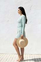 Dive into style with our UPF50+ Wrap Swim Active Skirt—the perfect cover-up that doesn't compromise on fun. Featuring our haze colour luxury Italian fabric with crisp white trim and an adjustable side tie, this skirt offers serious sun protection while keeping you looking effortlessly chic. Whether you're heading poolside or catching waves, slip it on over your swimsuit , bikini bottom or swim shorts for a flattering silhouette and peace of mind. Lightweight, quick-drying, and ready for anything.
