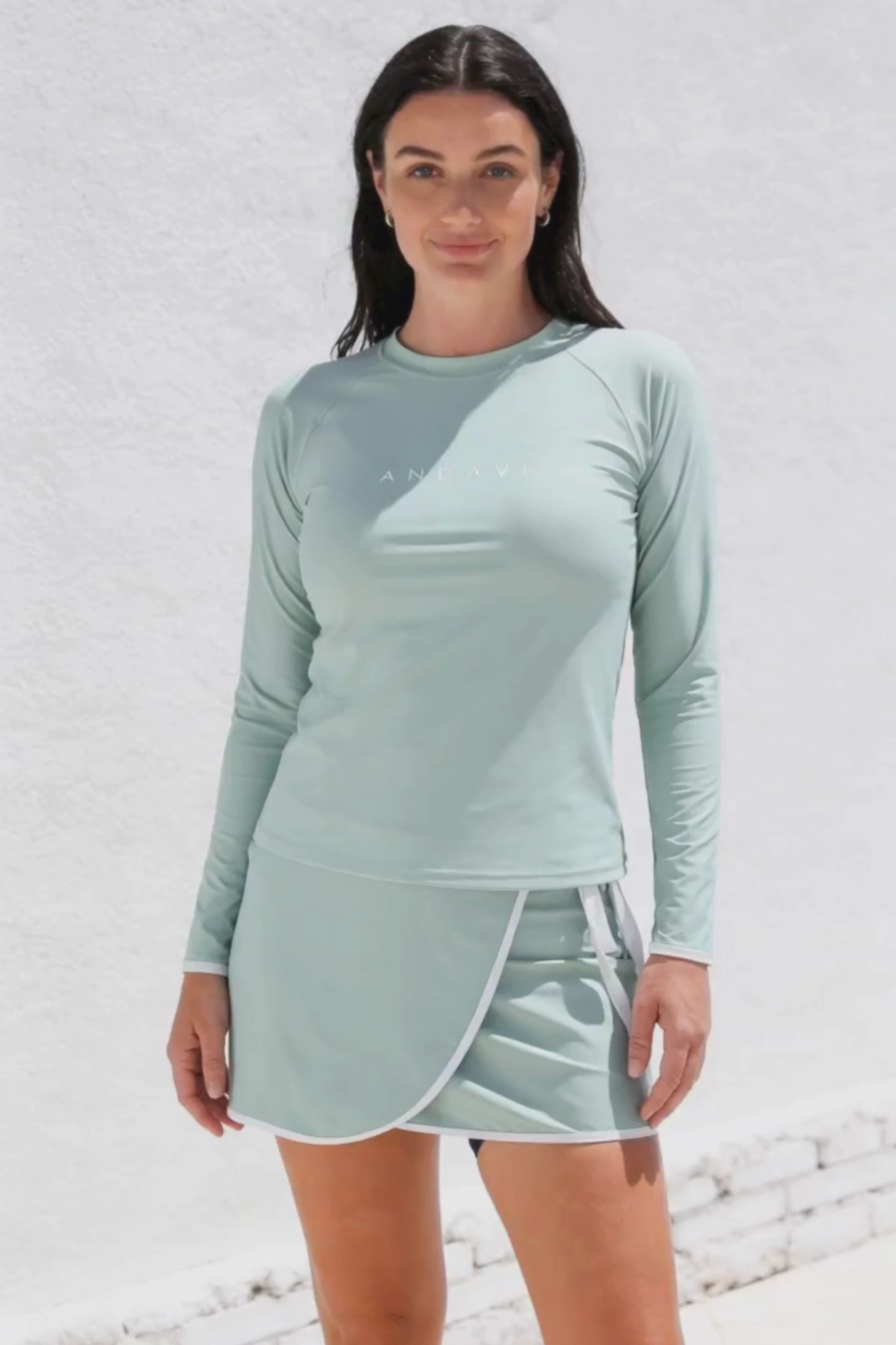 Andi Long Sleeve Active Swim t-Shirt + Wrap Swim Active Skirt in Haze
