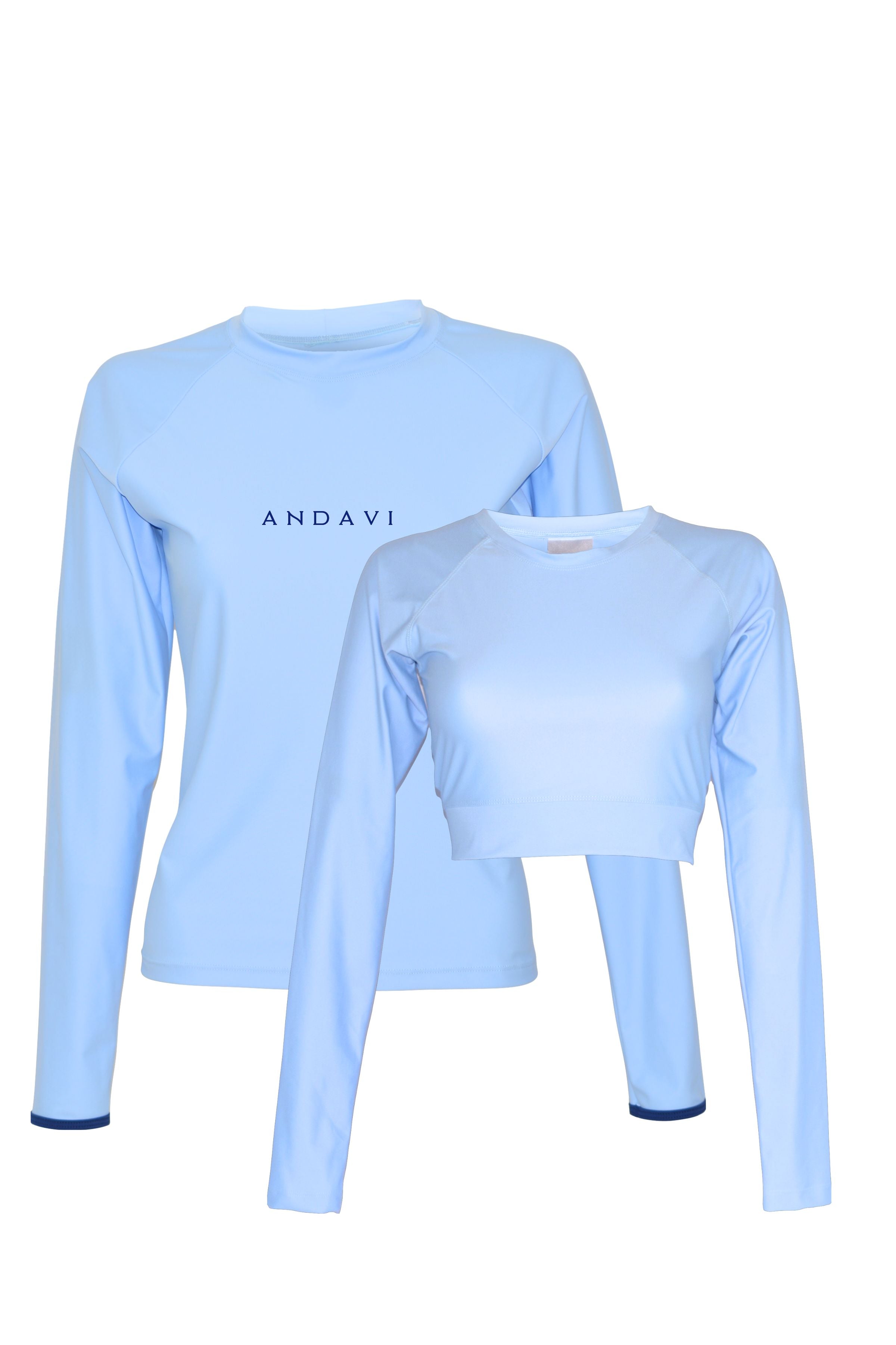 Black Friday Set - Andi relaxed Fit Rash Guard + Long Sleeve Crop Rash Guard in Light Blue