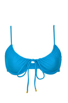 The Bluepearl underwire bikini top with front tie detail gives a stunning ruched detail over the bust and can be adjusted to your desired fit. To adjust the ruching over the bust as well as shoulder strap length, gently pull the tie front to your desired length. This underwire bikini top is padding free but has double lined fabric on the inner side for a more comfortable and natural fit to suit your individual breast shape.
