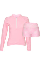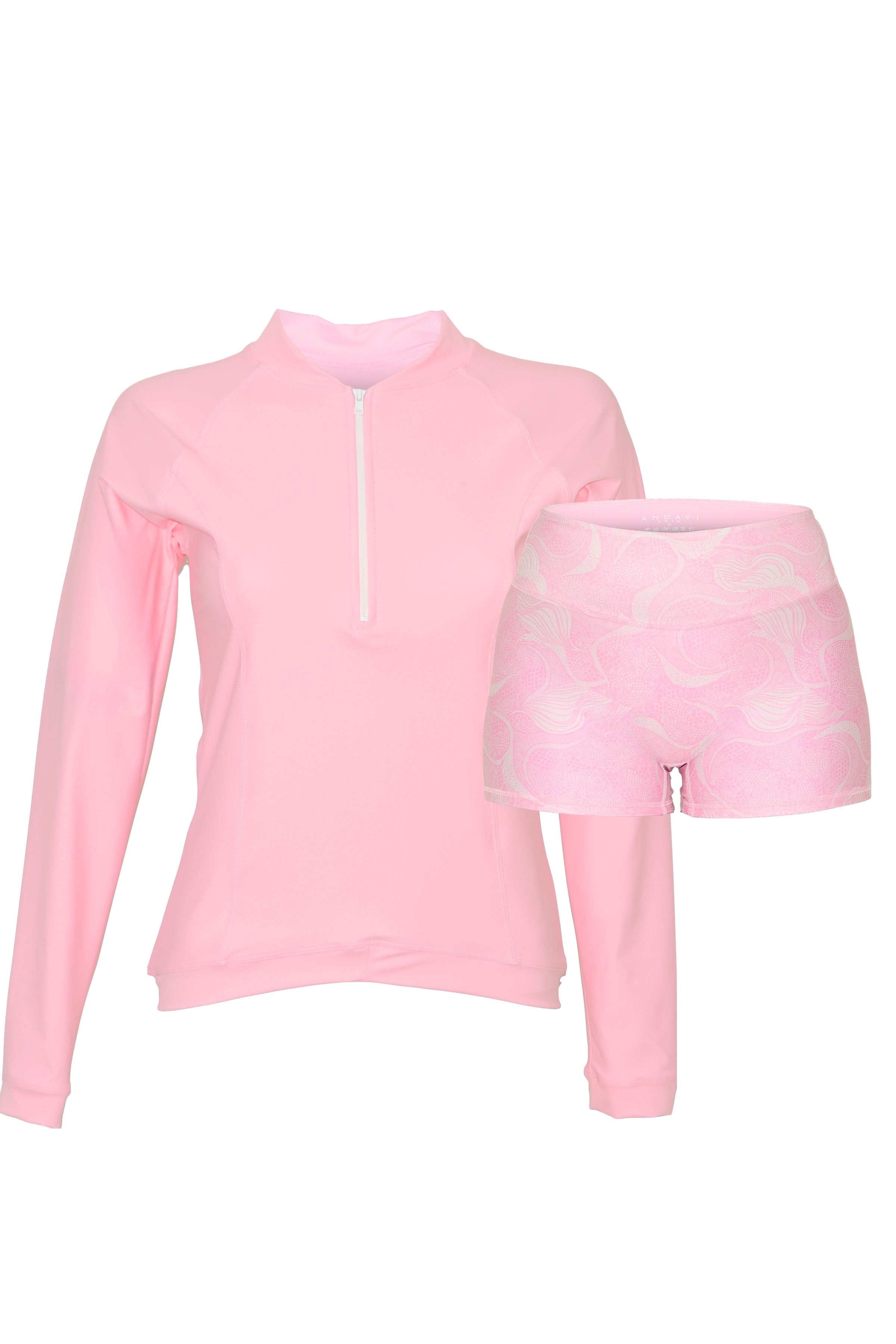 Bundle & Save - Ladysmith (Slim Fit) Rash Guard in Light Pink + Linne Swim Shorties in Pink Sands