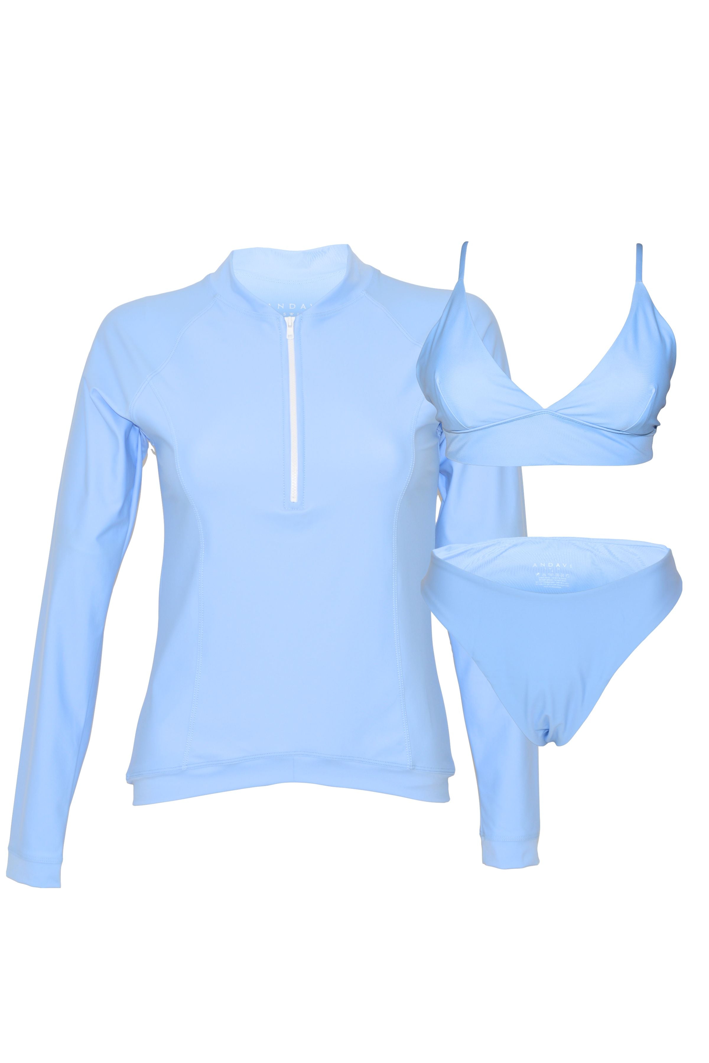 Bundle & Save - Ladysmith (Slim Fit) Rash Guard + Nari Bikini Top + Deloraine Bikini Bottom in light blue